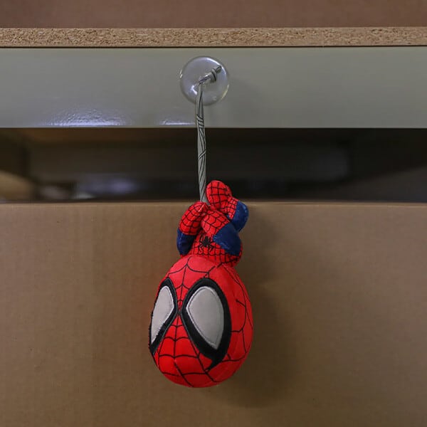 ウェブロープに吸盤が付いており、スパイダーマンの象徴的な逆さまにぶら下がるポーズをとっています♪